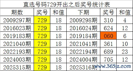 二、历史直选同号分析 福彩3D第2025315期开出直选号码为:729,该直选号码历史上出现了7次,其下期分手开出了号码:310、624、060、361、689、705,如图: